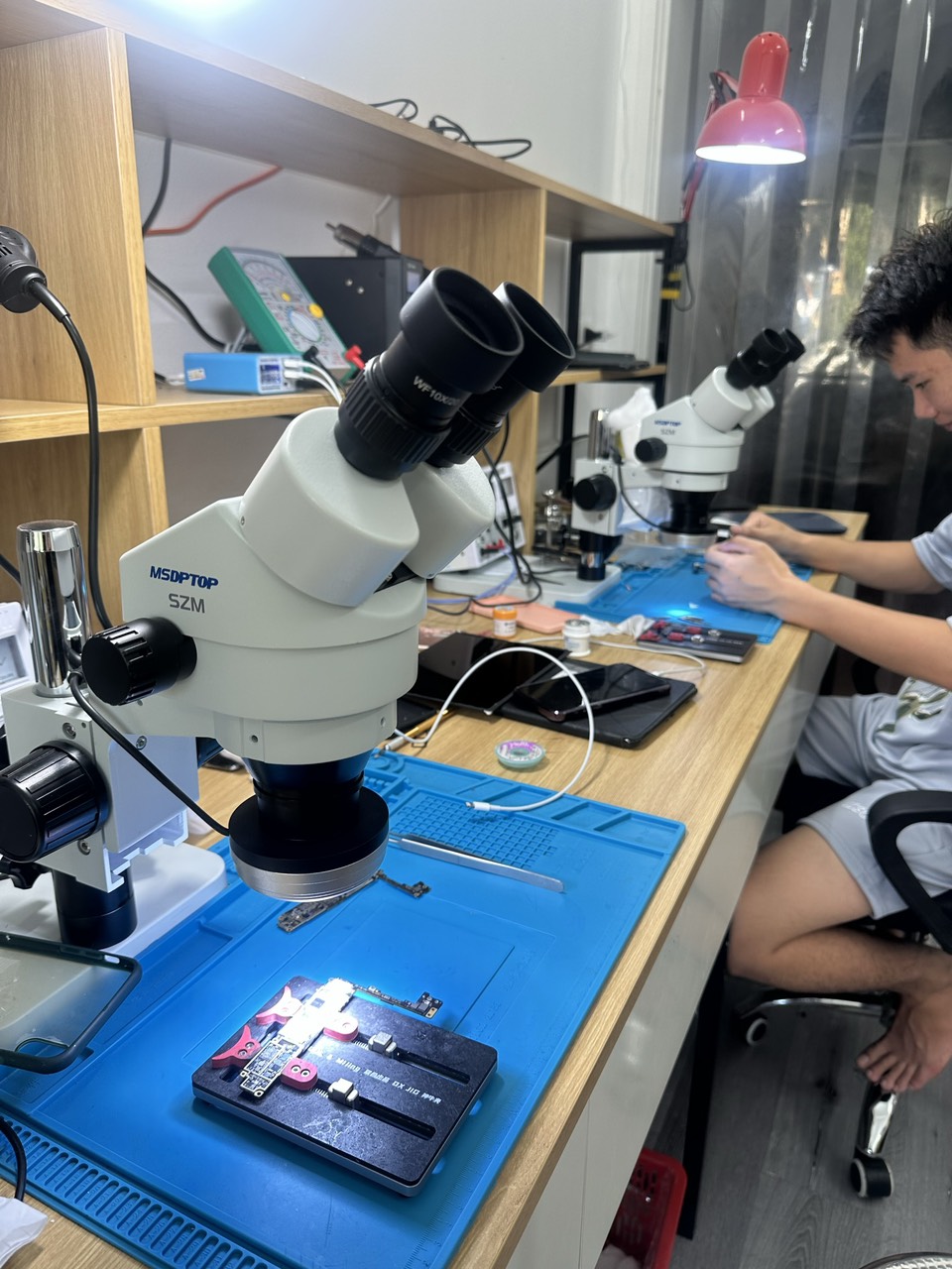 kính hiển vi soi nổi szm 2 mắt là loại kính phổ thông , cho tất cae mọi người thợ sửa chữa , thay thế linh kiện